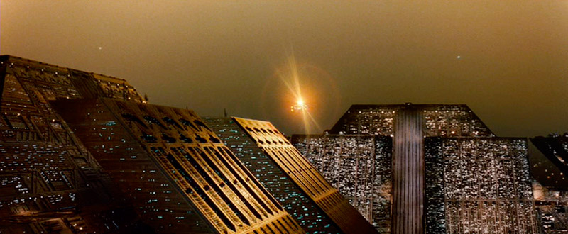 Heti elokuvan aluksi näemme kaksi Tyrell-korporaation vaikuttavaa pyramidimaista pääkonttoria. Näissä kolosseissa täytyy olla tuhansia työntekijöitä. (K5) Katsojille korostetaan sitä, kuinka vankasti vartioituja yrityksen tilat ovat.