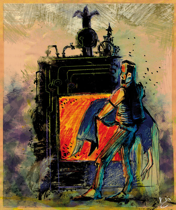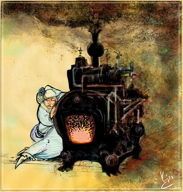 Höyrykone tuntui mulkoilevan Franzia varastonnurkastaan. Uuninluukku hehkui Annan kalmon kuumuudesta. Franz käänsi selkänsä sille ja nosti lapsen syliinsä. Se avasi suunsa ja huusi viheltävällä äänellä. Franz siirtyi omalle puolelleen varastoa ja ojensi lasta kohti ilmalaivaa.