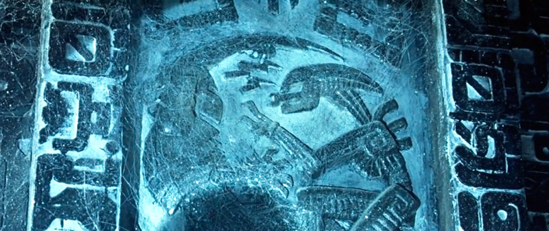 Eivätkä de Rosan päätelmät muutenkaan osu nappiin. Kun tutkimusryhmä löytää syvältä rakennelman uumenista sarkofagin, jossa säilytetään muukalaismetsästäjien järeitä sädeaseita, herra tunnistaa kannen kuviot oitis atsteekkien kalenteriksi – ihan siitäkin huolimatta, että kiekot on selvästi kirjoitettu predatorien omilla riimuilla, eikä monilla muilla pinnoilla näkyvillä ihmisten hieroglyfeillä (K4).