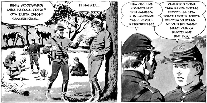 Hyvä esimerkki on Maisemaa!-tarina, joka kertoo vanhasta vietnamilaisesta riisinviljelijästä. Hän ei voisi vähempää välittää ympärillä käytävästä pohjoisen ja etelän sodasta. Taistelut vyöryvät kuitenkin yhtenään kylän yli, kun kumpikin osapuoli vuorollaan ”vapauttaa” asukkaat vihollisensa ikeestä. Lopulta jäljellä ovat enää hävitetyt riisipellot, tuhotut majat ja mutaisessa vedessä kelluva verinen olkihattu.