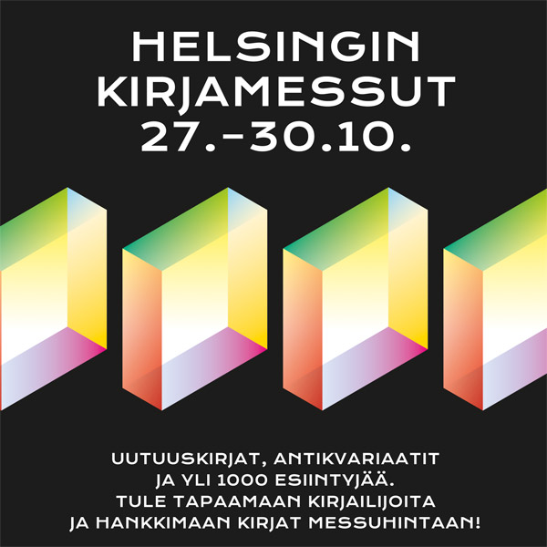 Kirjafanien vuoden kohokohta eli Helsingin Kirjamessut tekee jälleen tuloaan! 27.–30.10. kaikki kirjallisuuden ystävät suuntaavat kohti Helsingin Messukeskusta. Ohjelmaa on tavalliseen tapaan tarjolla runsain mitoin.