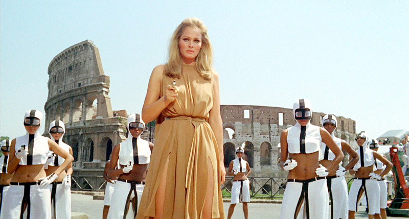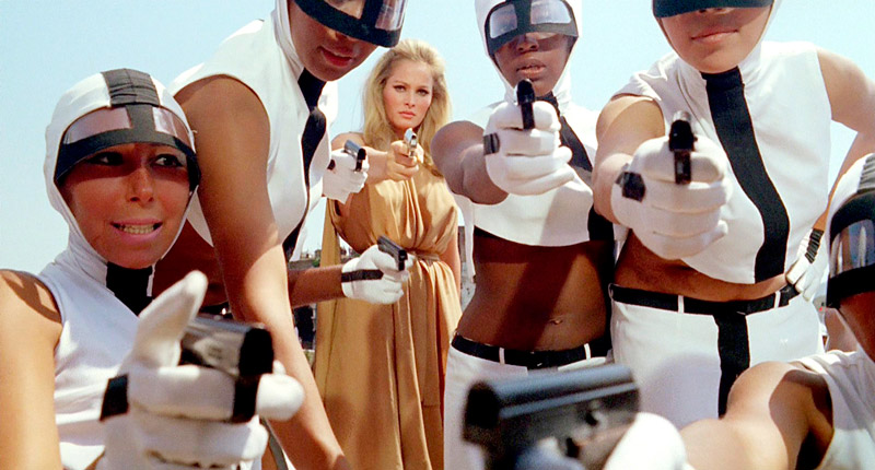 Vinkeästi piruilevan sisällön ja rooleistaan kaiken ilon irti ottavien näyttelijätähtien lisäksi filmin kantava voima on sen visuaalinen loistokkuus. Elokuva tulvii ihastuttavan 1960-lukulaista tulevaisuuskuvastoa, joka näkyy niin asusteissa, kalustuksessa, erilaisissa laitteissa kuin taideteoksissakin. Jostain syystä autoihin asti tämä tyylittely ei ole levinnyt, mutta toisaaltahan 1960-luvun alun eurooppalaiset autot ovat jo itsessään aikamoisen futuristisen näköisiä.
