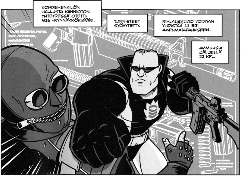 Kyseiseksi uhriksi tietokone valitsee italialaisen Marcello Polettin (Mastroianni). Tämä on murhannut edellisen kohteensa, saksalaisparoni von Richtofenin, sotilassaappaisiin piilotetulla pommilla. Marcellolla on toki muitakin huolenaiheita, sillä hän on vihdoin saanut mitätöityä avioliittonsa Lidia-vaimonsa (Luce Bonifassy) kanssa. Tämä maksoi hänelle puolet omaisuudestaan – joukossa myös hänen klassikkokirjallisuuden kokoelmansa, joka koostui pelkistä sarjakuvista.