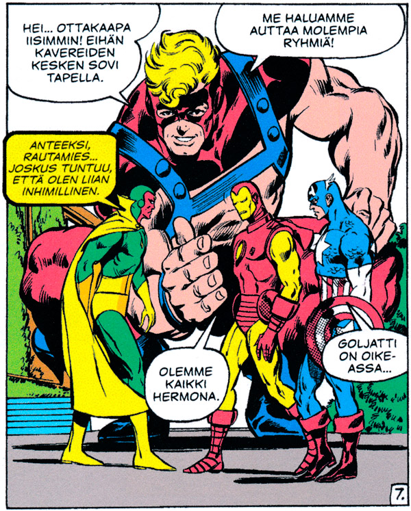 Sarjakuvan taide on oman aikakautensa supersankariseikkailujen aatelia. Sekä Adams että Buscema hallitsevat suvereenisti niin hahmojen kuin scifististen laitteiden ja ympäristöjen kuvittamisen.