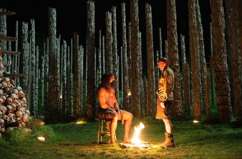 Toisaalla luutemppeliään rakentava tohtori Kelson (Ralph Fiennes) bondaa alfa-zombi Samsonin (Chi Lewis-Parry) kanssa. Tässä auttaa morfiini, joka rauhoittaa raivopäisen elävänkuolleen. Onko käsillä kenties kauniin ystävyyden alku?