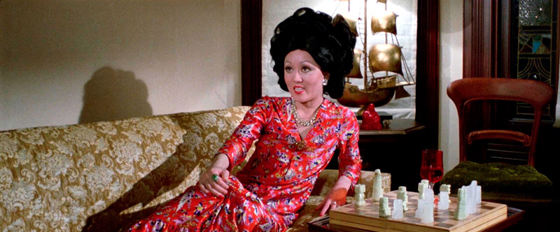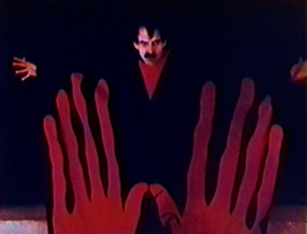 Manos1WEBLoitsutessaan Mestari levittelee jatkuvasti käsiään paljastaakseen mustan kaapunsa punaiset sormikuviot. Ele on mitä ilmeisimmin tarkoitettu uhkaavaksi. Paljon pelottavampia ovat kuitenkin näyttelijän liimatukka ja tekoviikset. Mielipuolisen kahjosta toljotuksesta nyt puhumattakaan.