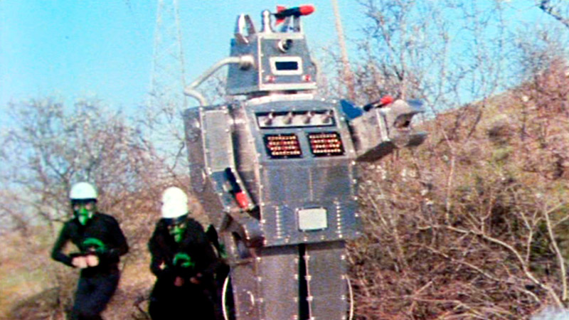 Gulik on lähettänyt kätyrinsä ryöväämään Energian ja Avaruuden Tutkimuslaitoksesta harvinaista radioaktiivista materiaalia. G-logolla varustettuihin mustiin asuihin, vihreisiin kaasunaamareihin ja valkoisiin kypäröihin sonnustautuneet joukot kidnappaavat mukaansa myös professori Morganin (José Maria Caffarel aka John Caffarel). Apuna tässä kaappauksessa on harvinaisen kömpelö peltirobotti, joka vilkuttaa valojaan, sylkee tulta käsistään ja ampuu raketteja korvistaan. Wau!