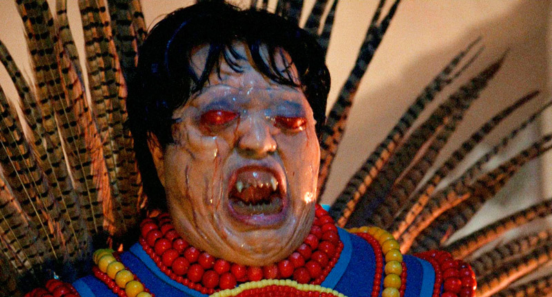 Koko hulluus huipentuu ”upeaan” kohtaukseen, jossa sankariemme apuun kutsuma, höyhenpukuista Godzillaa muistuttava valon jumala Quetzalcoatl – eli Kukulkan – ja matohirviöltä näyttävä kuoleman jumala Um-tzec yrittävät töniä toisiaan kumoon!