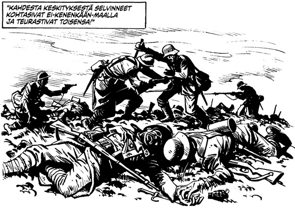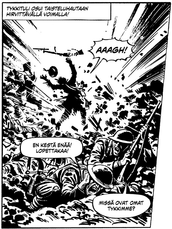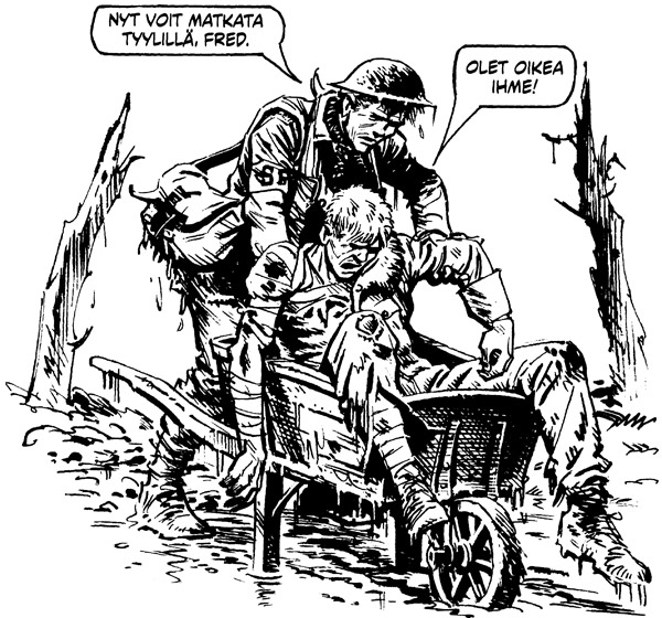 Anteliaiden mesenaattien, Kvaak Kirjan ja Zum Teufelin ansiosta suomeksi on vihdoin saatu sodanvastaisten sarjakuvien merkittävin klassikko, Charleyn sota (suom. Vesa Heino & Sauli Santikko). Pat ”Marshal Law” Millsin käsikirjoittama ja Joe Colquhounin kuvittama tuhatsivuinen teos julkaistiin alunperin Battle Picture Weekly -lehdessä vuosina 1979–1985. Viikoittain uutta tavaraa ilmestyi 3–4 sivun verran.