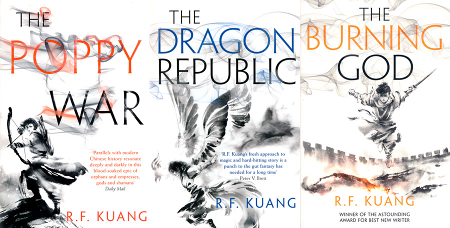 Liu Cixin käsitteli Kolmen kappaleen probleema -romaanissaan kulttuurivallankumousta, ja Ken Liu käytti The Grace of Kingsissä lähdemateriaalina Han-dynastian aikaa, eli niin kutsuttua Kiinan kultaista aikakautta. Fantasiakirjailija Rebecca F. Kuang nostaa rimaa ja yhdistää useita aikakausia ja teemoja yhteen laajaan narratiiviin: Song-dynastian estetiikka kohtaa brittien oopiumisodat, Japanin sotarikokset ja kommunistien pitkän marssin.