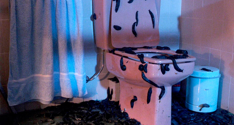 Kova kohtalo odottaa myös sekstailevaa nuortaparia, Donnaa (Kari Rose) ja Bobbya (Kris Mann). He joutuvat ilman rihmankiertämää vessanpöntöstä esiin ryömivien etanamassojen iltapalaksi.